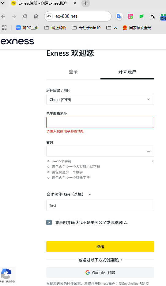 一、快速注册Exness账户